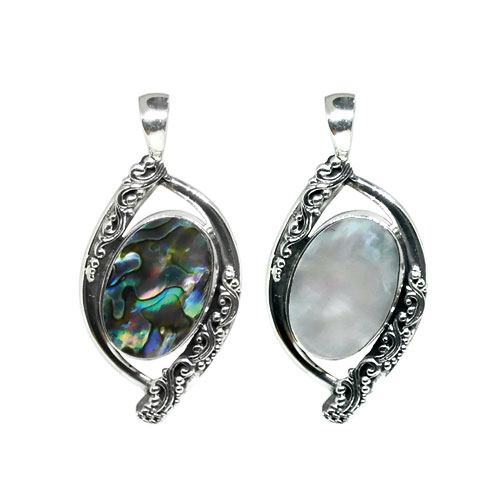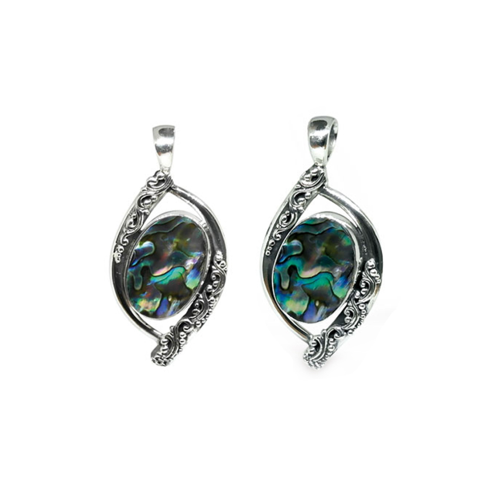 Handcrafted Sterling Silver Pendant with 36X30mm Paua Shell and 5mm assorted stones