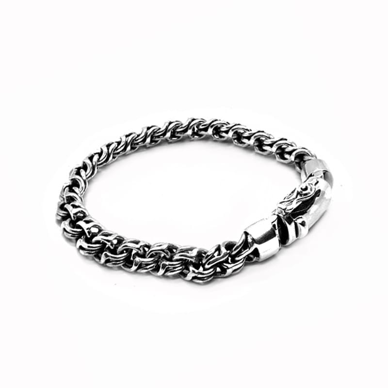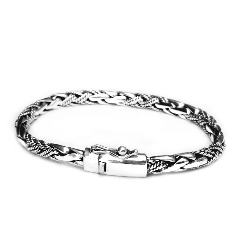 6x4mm Hand Braided twisted wire Sterling Silver Bracelet with snap closer
