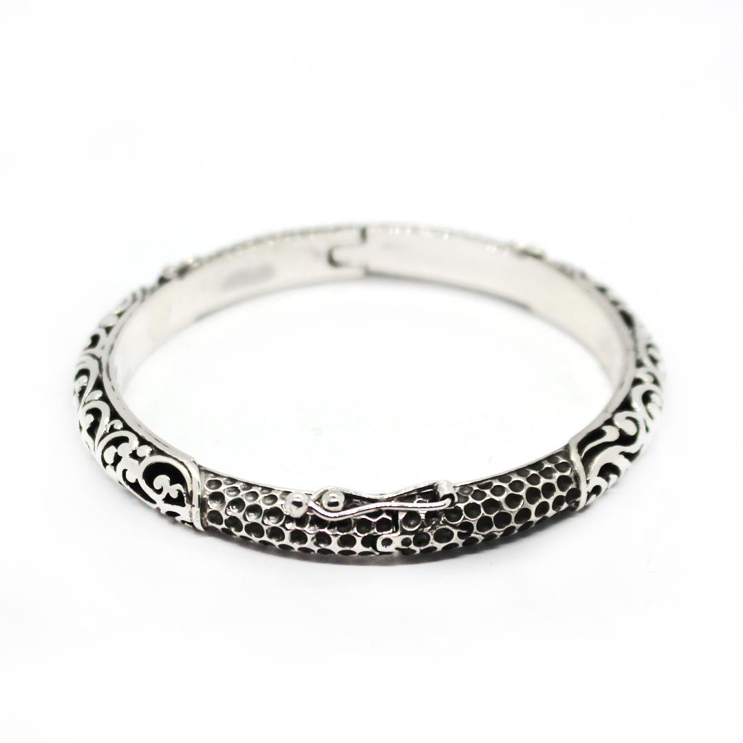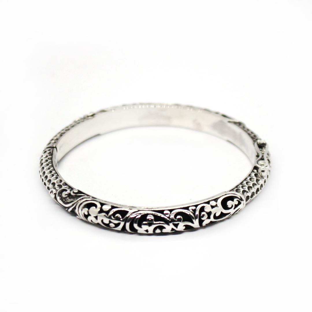 Sterling Silver Bangle Filigree Decorated Dot Accent